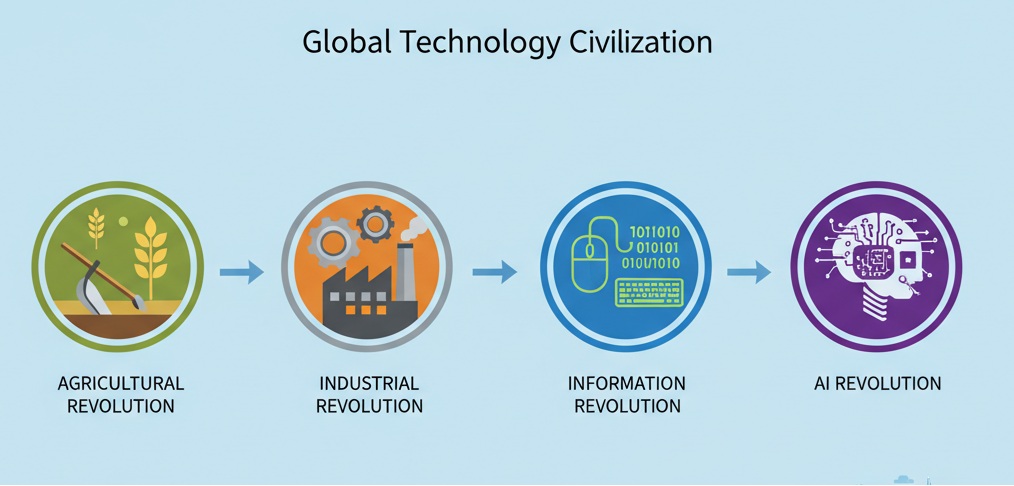 全球科技文明之演進,從農業革命、工業革命、資訊革命至AI革命,每一次技術突破皆帶來產業結構之重大變革。福特發明輸送帶,開創大量生產之可能;AI之加入,則將改寫動作時間研究理論,開啟管理學界新研究領域。