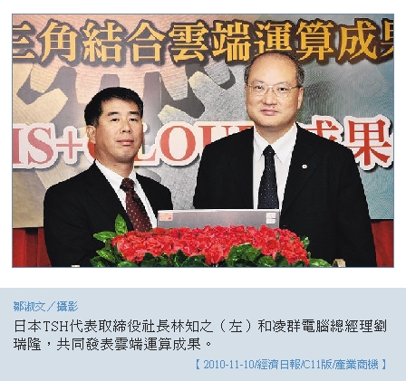 凌群電腦總經理劉瑞隆表示,「MMS+CLOUD」的發表,不僅是TSH公司跨入企業雲端應用領域的第一項作品,也是台、日、中三地軟體供應鏈「新黃金三角」共同合作的結果,更見證了凌群電腦的造雲實力。