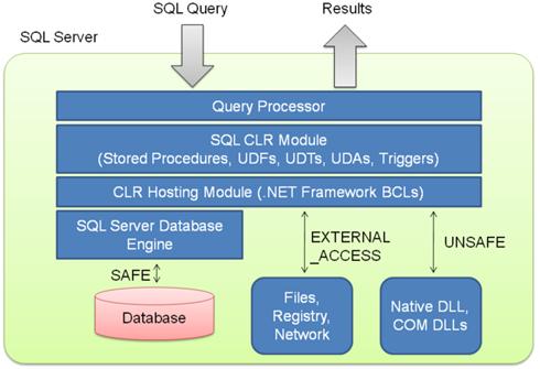 官方說明如下:做為 Microsoft .NET Framework 核心的 Common Language Runtime (CLR) 提供了所有 .NET Framework 程式碼的執行環境。CLR 中執行的程式碼稱為 Managed 程式碼。利用 Microsoft SQL Server 中裝載的CLR (稱為 CLR 整合),您能夠以 Managed 程式碼撰寫預存程序、觸發程序、使用者定義函式、使用者定義型別及使用者定義彙總。因為 Managed 程式碼在執行前會編譯成原生程式碼,所以在部分案例中可大幅提升效能。