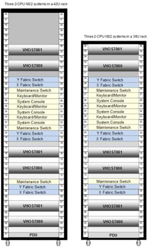 《圖十六》42U and 36U rack configurations for three NS2 system per rack