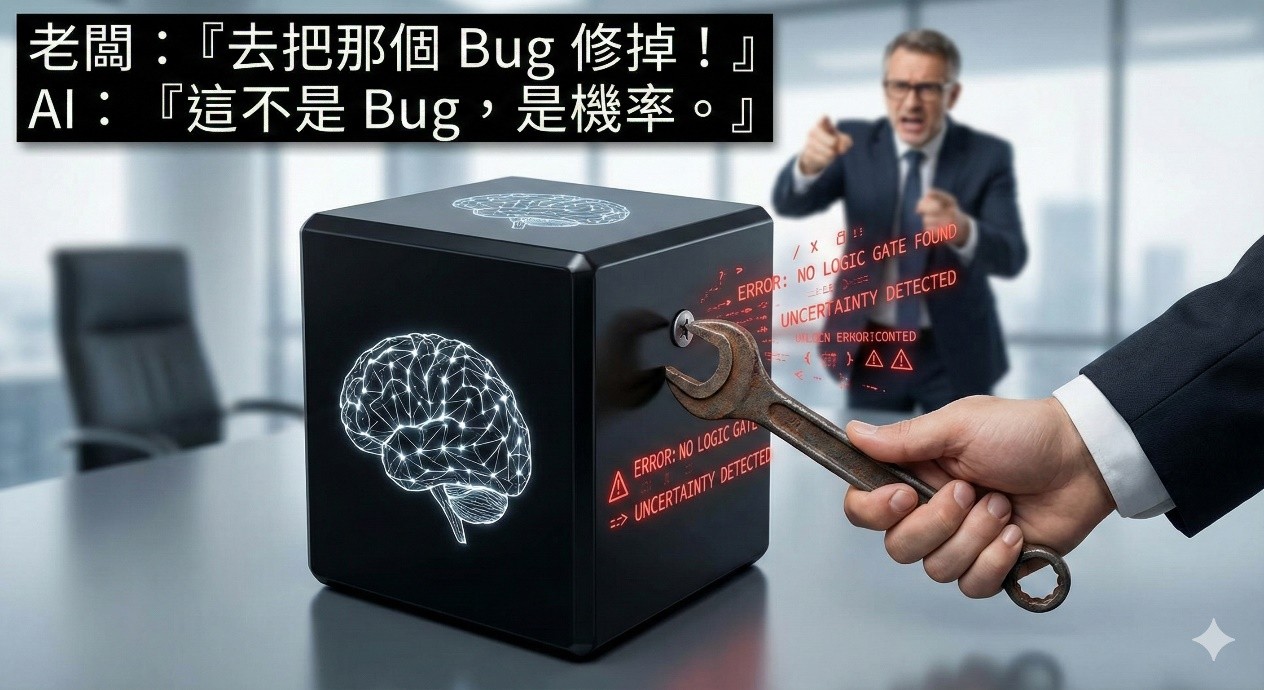 - 從「確定性」變成「機率性」: 這是傳統開發者最痛苦的跨越,在 Software 1.0,輸入 A 必定得到 B,若不是就是錯;但在AI專案中,模型告訴你「這張圖 95% 是貓」,這不是 Bug,這是一個特徵!AI 本質上是在處理不確定性,我們追求的不再是邏輯上的完美,而是統計上的準確。